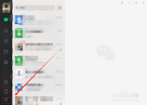 在微信本家儿界面的左下角有个三条横杠的菜单图标,点击该图标