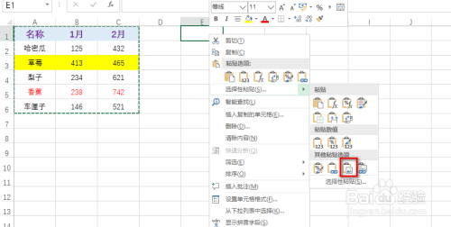接着,在一空白单位格中,鼠标右键,点击“选择性粘贴”,并点击“图片”,具体如图所示: