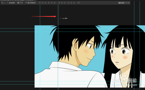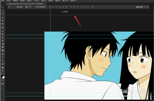 - 6按住参考线标的目的上拖动,拖到最顶端。