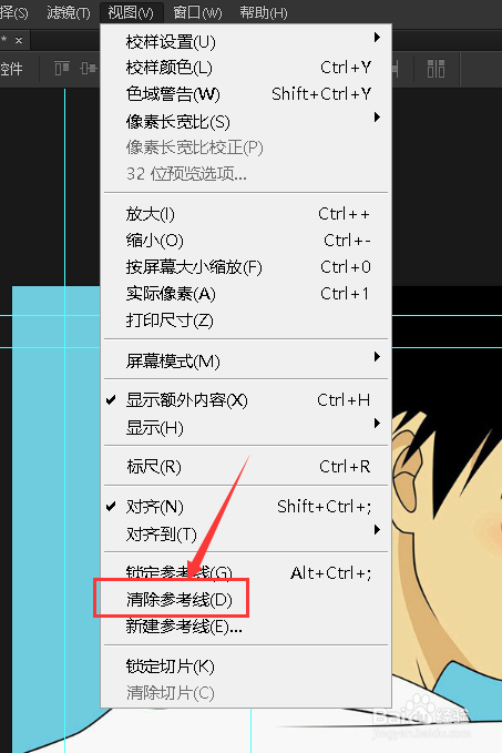 如图所示,打开图片后莫名其妙冒出了参考线。