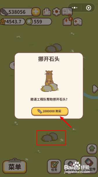 若是想更多的摊位,需要【花2000000鱼干】请工程队帮忙挪开石头,就可以进行更多招租了。