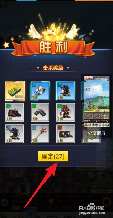 点击确定,领取胜利的奖品,对应的奖品有法、剑
