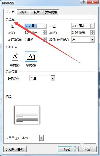 这时就会打开页面上的窗口,找到页面边距的设置项。