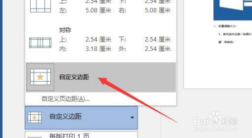 然后在打开的下拉菜单中,点击自界说边距的设置项。