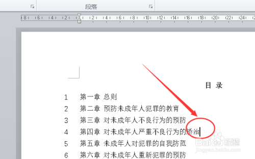 光标置于文档中的肆意一处。