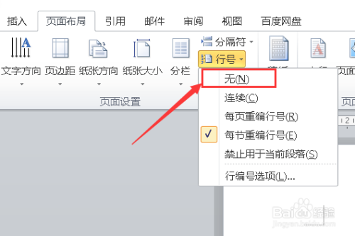 找到页面设置中的【行号】。