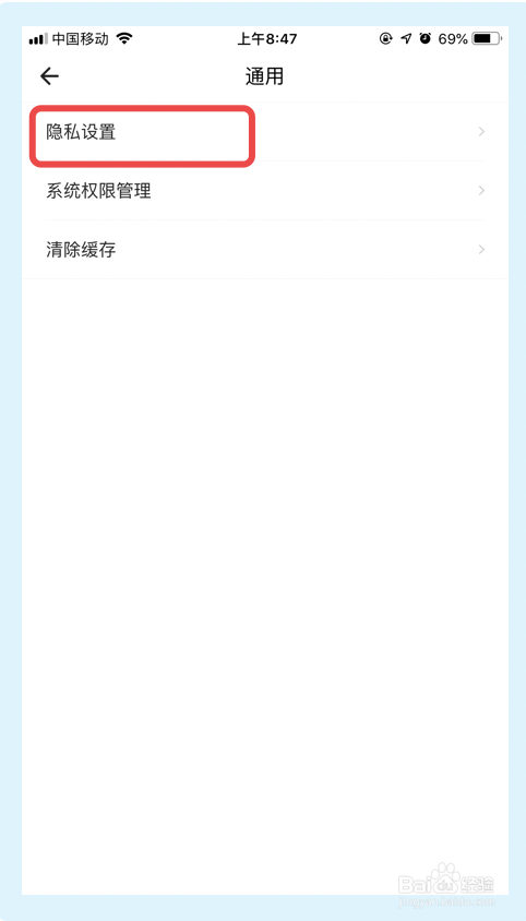 点击【隐私设置】选项。