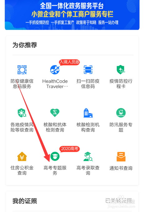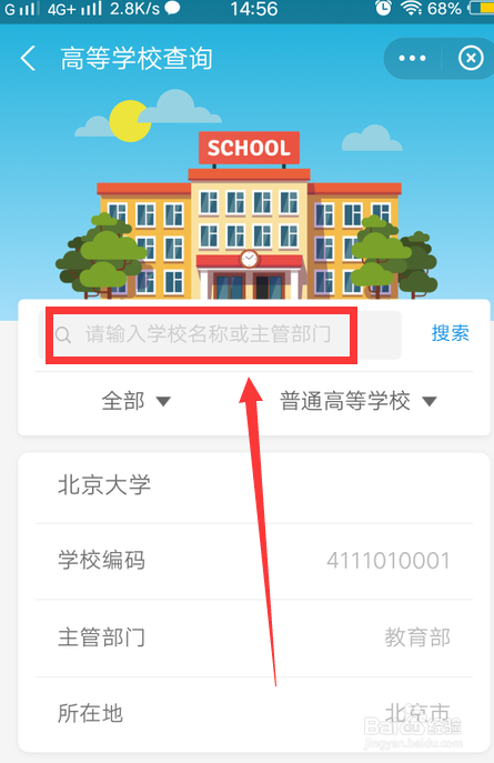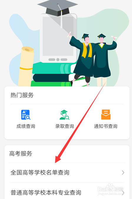 然后在底部高考办事里,点击全国高档黉舍名单查询。