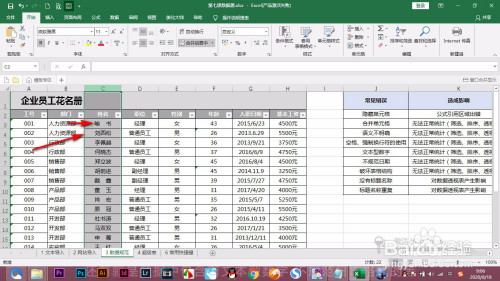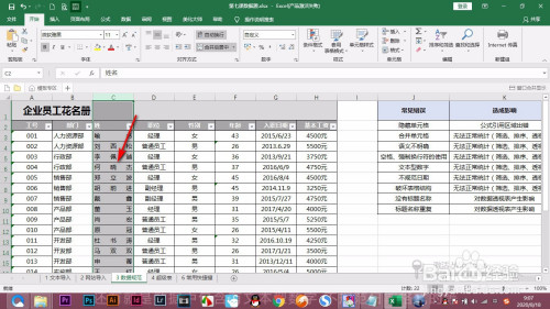 1.当前我们可以看到我们是利用空格将两个字和三个字的名字包管为统一个宽度。可是因为空格的原因,导致我们在筛选或者是进行查找的时辰就呈现问题,怎么办呢?