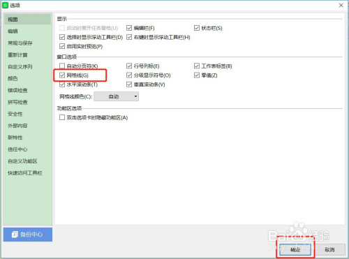 勾选【网格线勾】选项,点击下方的【确定】