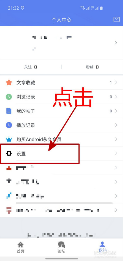 进入我的页面之后,点击菜单中的“设置”。