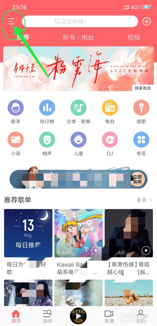 第一、打开酷我音乐App,接着在酷我首页内点击“三”图标;