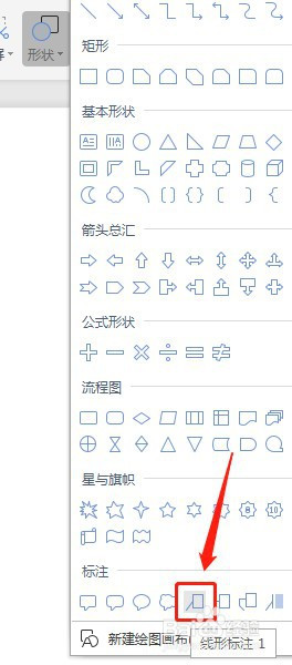 在外形里面找到标注里面的线形标注1图标,单击线形标注1