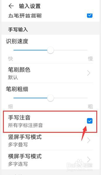 点击勾选【手写注音】后面开关,即可开启手写生僻字注音。