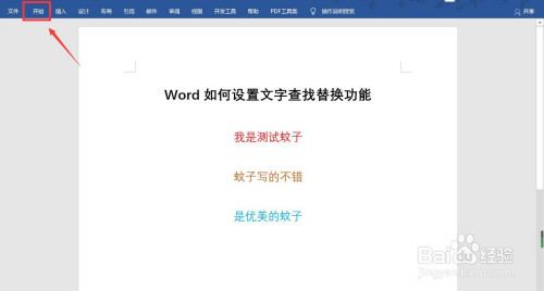打开Word,点击菜单栏的【起头】选项(如图所示)