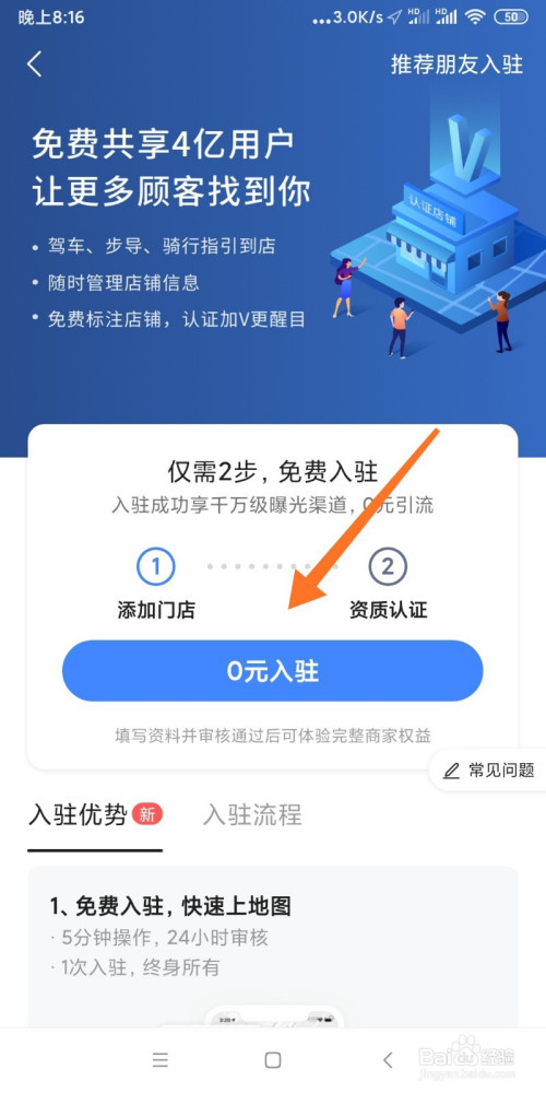 选择点击按钮【0元入驻】。