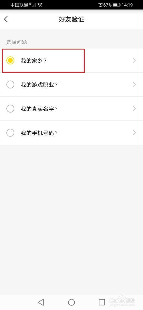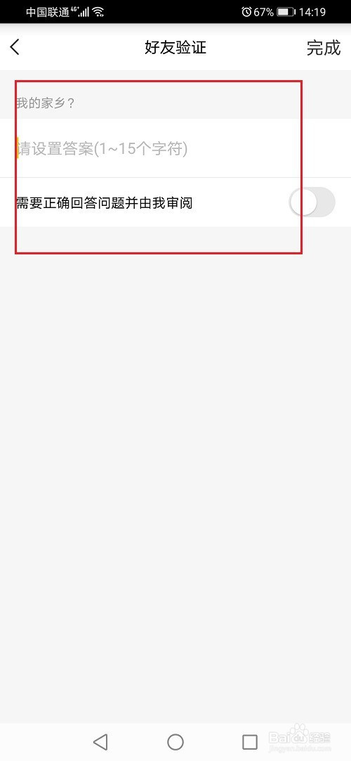 第五步输入问题谜底,点击完当作,就当作功设置添加老友的问题了