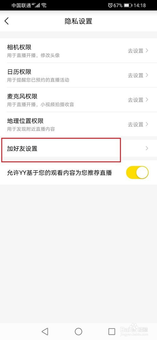 第一步打开yy之后,点击设置,然后点击隐私设置
