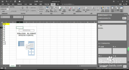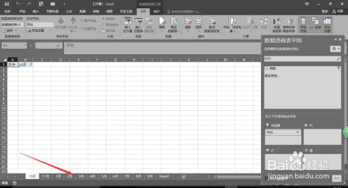 在数据透视表字段中选择“月份”,拉到下方的“筛选器”。