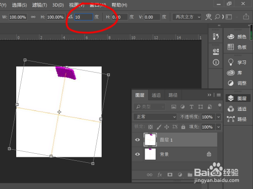 Ctrl+T激活图层,并在属性窗口设置合适的扭转角度,可以发现此时看不出较着转变;