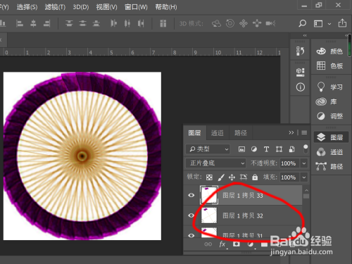 利用快捷键Ctrl+Shift+Alt+T,复制拷贝图层,多进行几回操作,即可发现一个绕旋的图案就绘制好了!