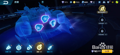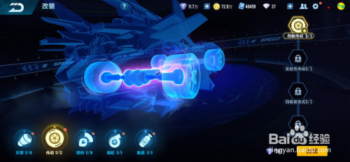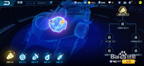 改装分为“引擎”、“传动”、“燃料”、“涡轮“、”集氮“。下面来看各项如何改装。这里保举“右左”的改装方案。