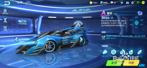 进入飞车后,在右下角“车库-A车”中找到裂空。