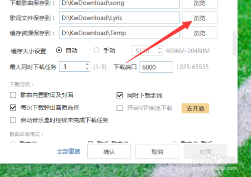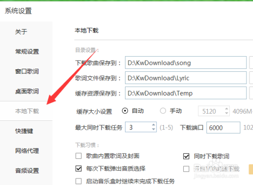 这样,右侧就会弹出这个界面,此中最上面的第二个内容就是歌词默认的下载位置。