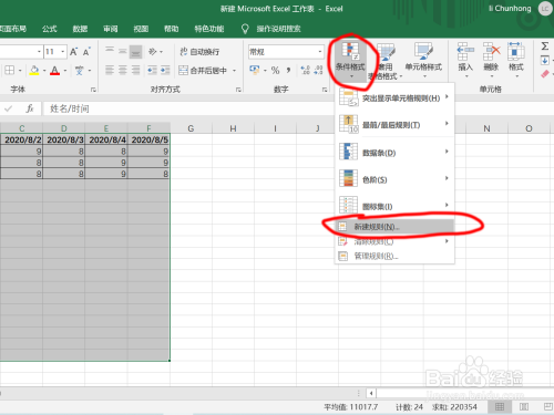 下面来介绍一种在输入内容时自行添加边框的方式:选中添加边框的区域,点击“前提格局”-“新建法则”;