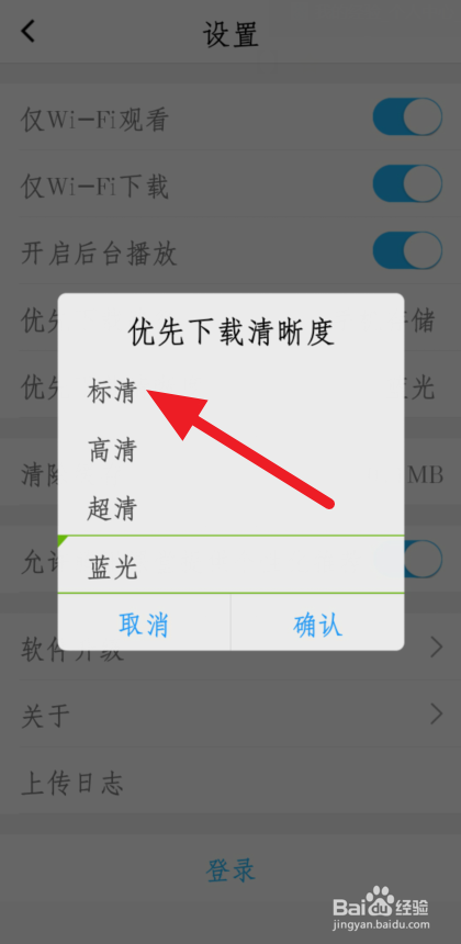 进入优先下载清楚度选择窗口,点击【标清】。