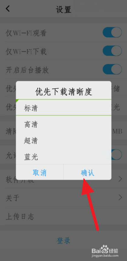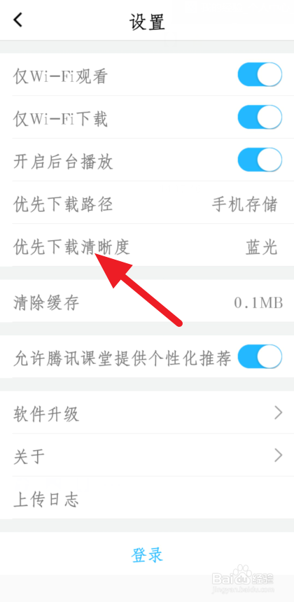 进入应用设置,点击【优先下载清楚度】。