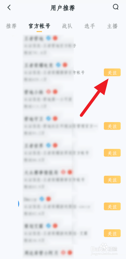 进入【达人】用户保举页面,点击顶部的【官方账号】。