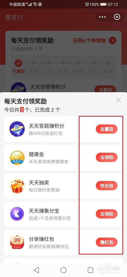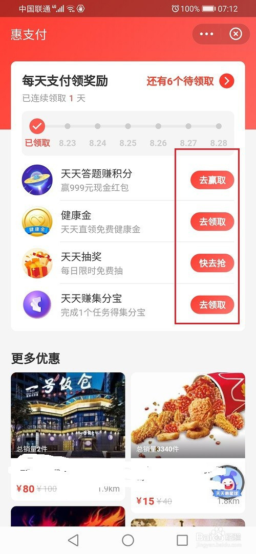第四步进去支付宝惠支付之后,可以看到所有优惠,点击可以进行领取