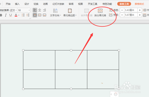 3、弹出表格东西栏,点击下方的拆分单位格。