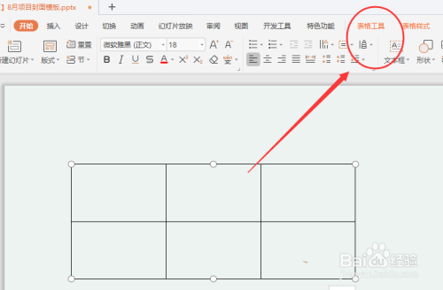 2、选中表格,点击上方的表格东西。