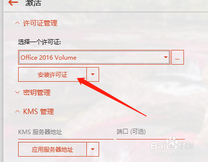 2.再安装指定Office 2016许可证。