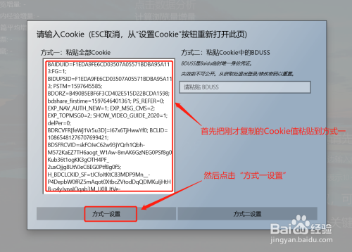 然后把刚复制的Cookie的值粘贴到体例一,然后点击“体例一设置”。