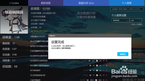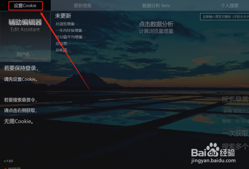 进入到百度经验小我助手,点左上角击“设置Cookie”。