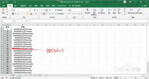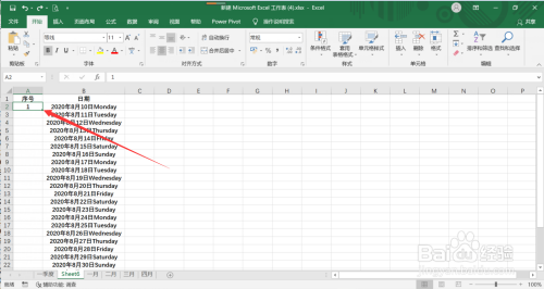 第一步:打开Excel表格,先在单位格中输入1
