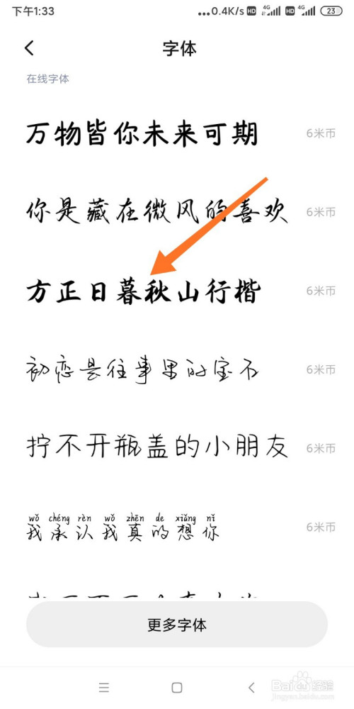 我们可以选择点击按钮【更多字体】查看更多字体。