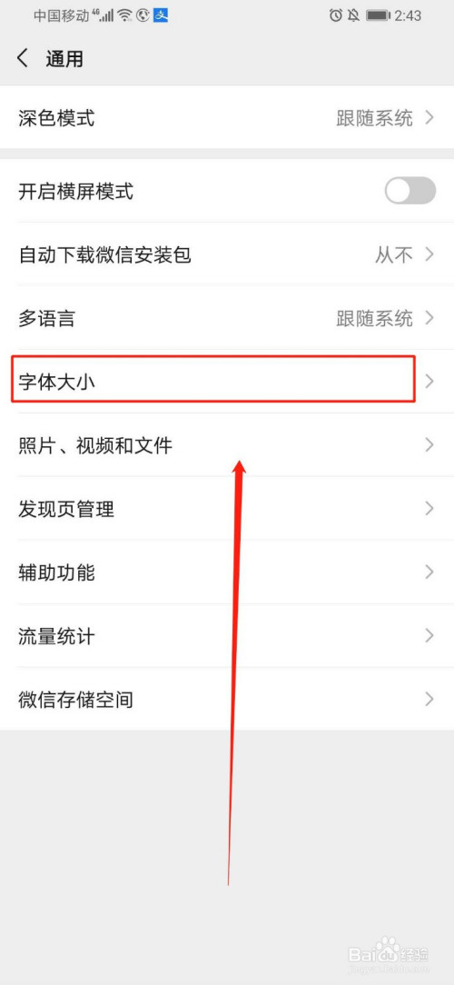 进入“通用”界面后,点击“通用”界面第五行的“字体大小”,如图