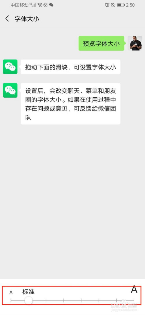 6.滑动下面的横轴调整字体大小,往右划字体变大,往左划字体变小
