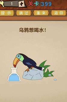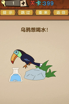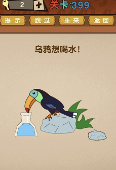 最强的大脑第399关:乌鸦想喝水!谜底【1。将右边的小石头打坏。2.将碎了的小石头放入水杯中】
