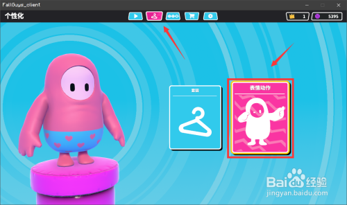 接着,若是我们想要改换脸色和动作,可以点击本身的装扮按钮,并点击“脸色动作”选项。