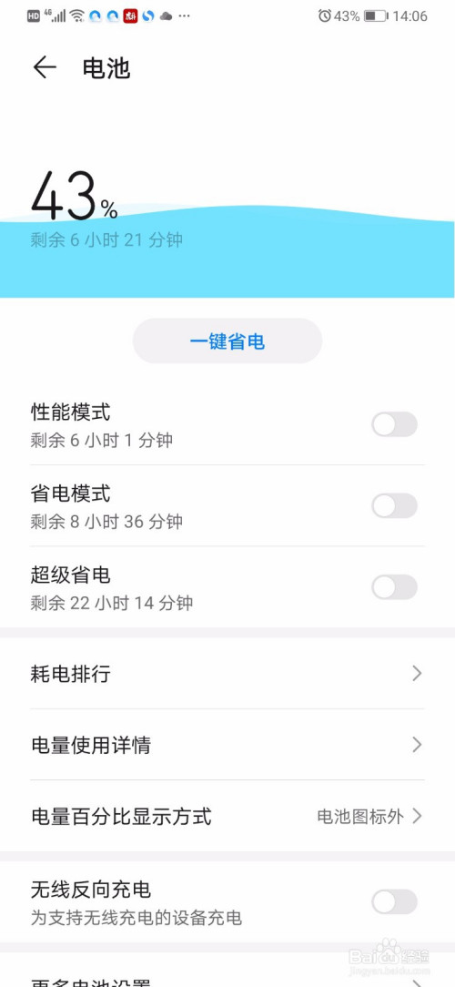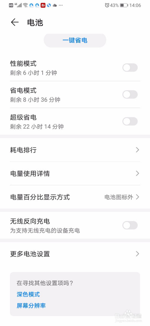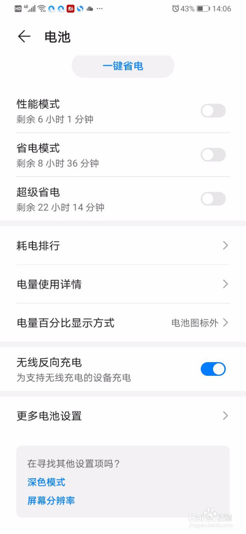 看到一个叫做无线反标的目的充电的选项,点击一下后面的开关。