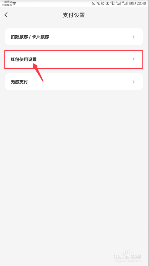 在【支付设置】中,点击【红包利用设置】,如下图所示。