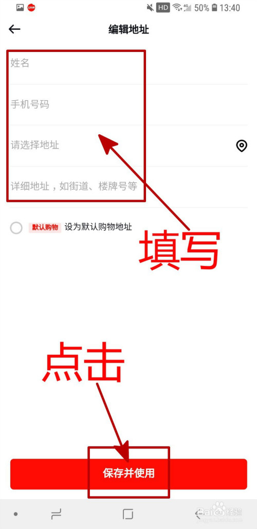 进入地址的编纂界面之后,填写地址信息,之后点击页面下方的“保留并利用”即可。