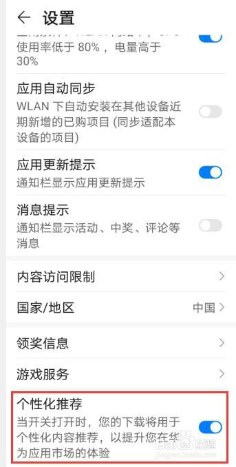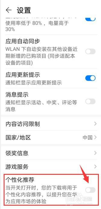 点击【个性化保举】后面按钮即可封闭个性化保举。