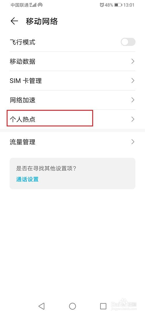 第二步在移动收集中,点击小我热点