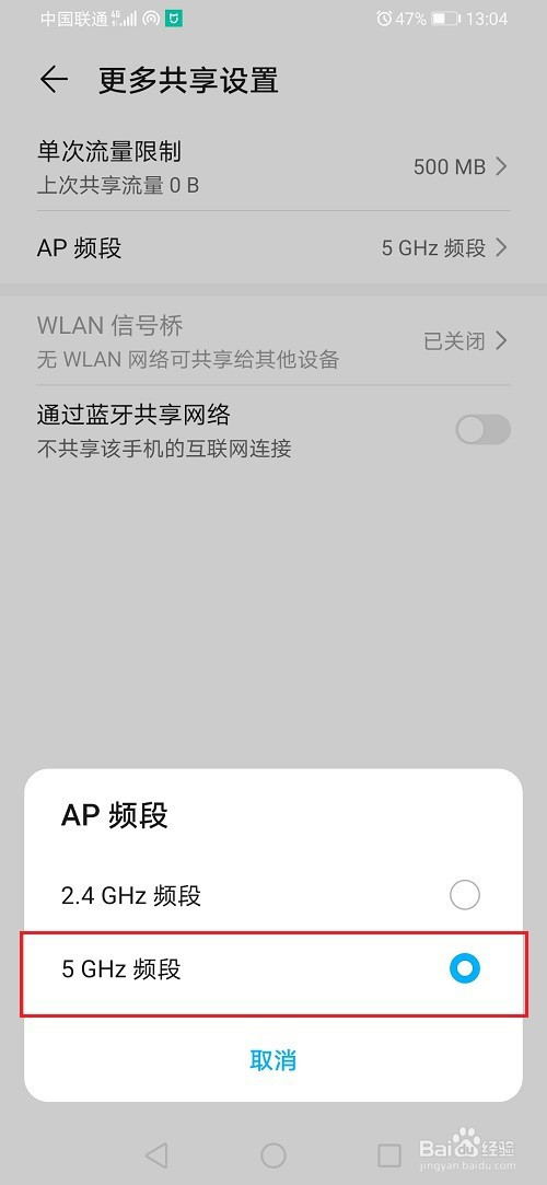 第五步点击华为手机AP频段之后,可以设置频段为5G,按照需要设置
